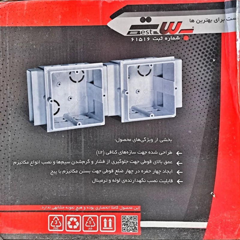 طراحی شده جهت سازه های کنافی عمق بالای قوطی جهت جلوگیری از فشار و گرم شدن سیم ها و نصب انواع مکانیزم ایجاد چهار حفره در چهار صلع قوطی جهت بستن مکانیزم با پیچ قابلیت نصب نگهدارنده ی لوله و ترمینال