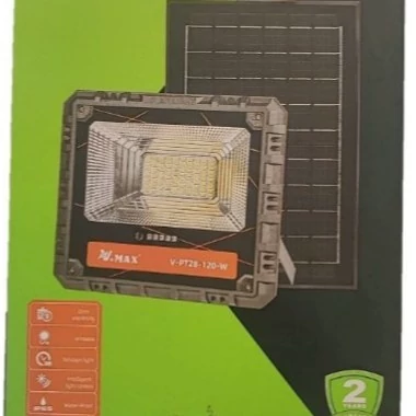 مشخصات پروژکتور خورشیدی 120 وات ویمکس مدل V-PT28-120-W: مدل: V-PT28-120-W توان: 120 وات مارک: ویمکس VMAX رنگ نور: مهتابی نوع لامپ : ال ای دی SMD تعداد ال ای دی: 192 عدد دارای نشانگر میزان شارژ نوع پنل: مونو کریستال 5 ولت 10 وات ابعاد چراغ: 53*218*252 میلیمتر ابعاد پنل: 15*330*205mm نوع باتری: Li-ion 3.2V 8AH راه اندازی و نصب آسان ضد آب و ضد گرد و غبار و رطوبت دارای کنترل از راه دور دارای دو سال گارانتی بسته شامل: 1-یک پروژکتور خورشیدی 2-یک پنل خورشیدی 3-یک کنترل از راه دور 4-برخی لوازم جانبی