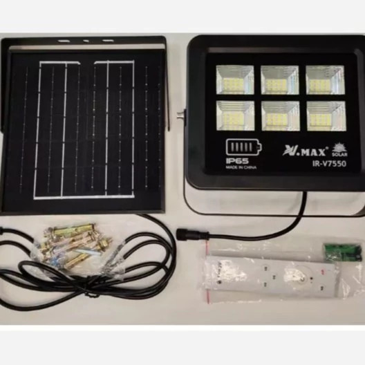 24 ماه ضمانت تعویض . چراغ خیابانی خورشیدی دارای حسگر نور محیطی و روشنایی خودکاری( فتوسل) می باشد. مشخصات پروژکتور خورشیدی 50 وات ویمکس مدل IR-V7550: مدل: IR-V7550 توان: 50 وات مارک: ویمکس V.MAX رنگ نور: مهتابی نوع لامپ : ال ای دی SMD تعداد ال ای دی: 72 عدد نوع پنل: مونو کریستال 5 ولت 6وات ابعاد پنل: 200*210*15mm نوع باتری: Li-ion 3.2V 5AH روشن / خاموش خودکار از غروب تا سپیده دم (10 تا 12 ساعت کار). فول شارژ شدن در 8 ساعت راه اندازی و نصب آسان ضد آب و ضد گرد و غبار و رطوبت دارای کنترل از راه دور دارای ال ای دی نشانگر شارژ دارای دو سال گارانتی بسته شامل: یک پروژکتور خورشیدی یک پنل خورشیدی یک کنترل از راه دور برخی لوازم جانبی موارد نصب چراغ : نور پردازى حیاط ساختمان، باغ ویلا، روف گاردن یا پشت بام، پارکینگ، گاراژ ، جاده ،باغها ، اطراف خانه یا کارخانه ها و مکانهای دیگر عالی است