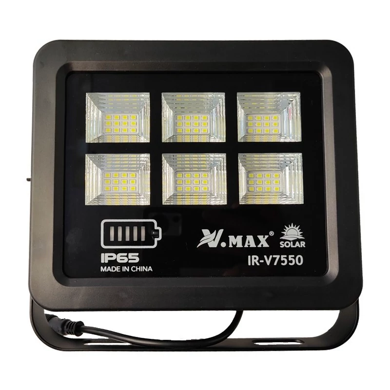 24 ماه ضمانت تعویض . چراغ خیابانی خورشیدی دارای حسگر نور محیطی و روشنایی خودکاری( فتوسل) می باشد. مشخصات پروژکتور خورشیدی 50 وات ویمکس مدل IR-V7550: مدل: IR-V7550 توان: 50 وات مارک: ویمکس V.MAX رنگ نور: مهتابی نوع لامپ : ال ای دی SMD تعداد ال ای دی: 72 عدد نوع پنل: مونو کریستال 5 ولت 6وات ابعاد پنل: 200*210*15mm نوع باتری: Li-ion 3.2V 5AH روشن / خاموش خودکار از غروب تا سپیده دم (10 تا 12 ساعت کار). فول شارژ شدن در 8 ساعت راه اندازی و نصب آسان ضد آب و ضد گرد و غبار و رطوبت دارای کنترل از راه دور دارای ال ای دی نشانگر شارژ دارای دو سال گارانتی بسته شامل: یک پروژکتور خورشیدی یک پنل خورشیدی یک کنترل از راه دور برخی لوازم جانبی موارد نصب چراغ : نور پردازى حیاط ساختمان، باغ ویلا، روف گاردن یا پشت بام، پارکینگ، گاراژ ، جاده ،باغها ، اطراف خانه یا کارخانه ها و مکانهای دیگر عالی است