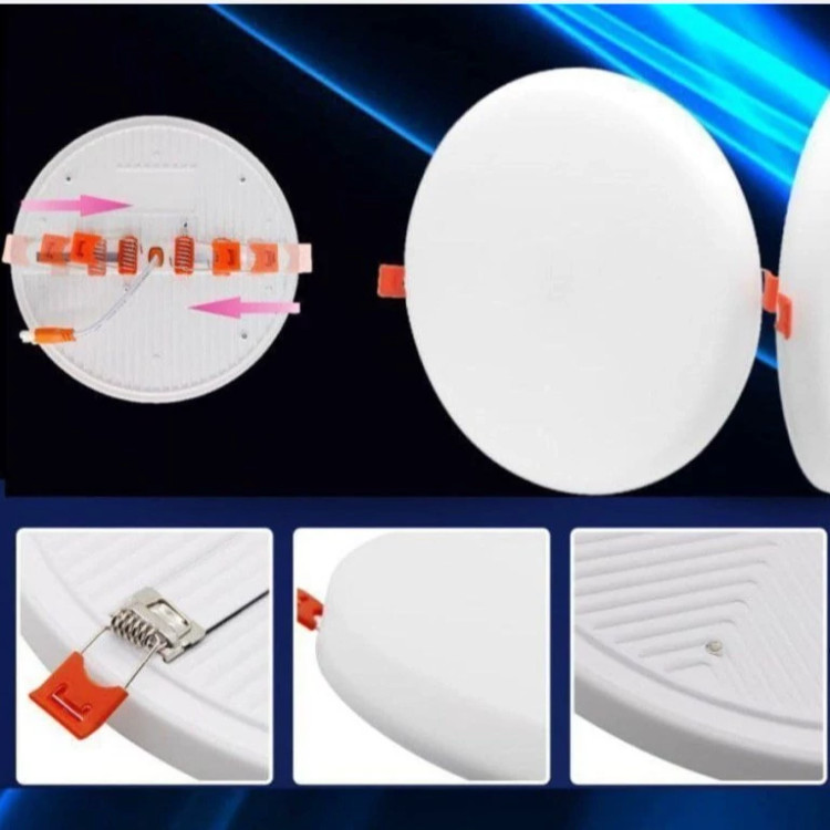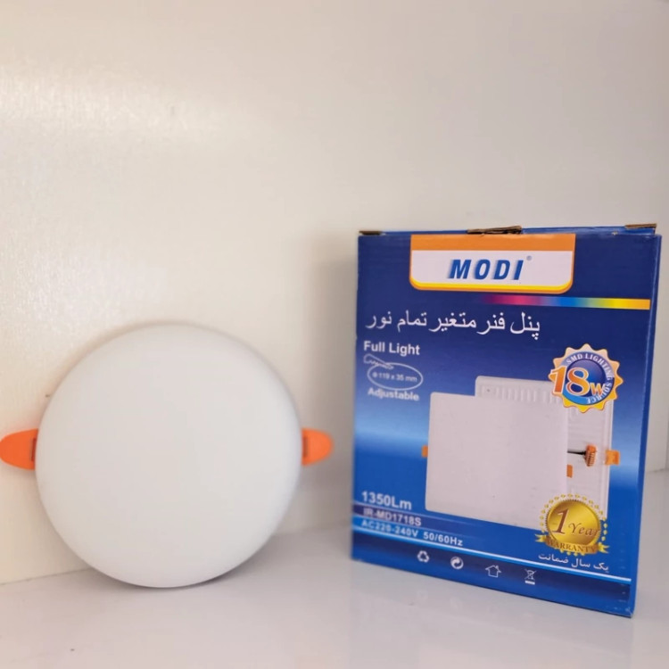 پنل سقفی توکار گرد 18 وات تمام نور فنر متغیر (4 تا 1.5 سانتیمتر) برند مودی با شار نوری 1600 لومن و طول عمر 25000 ساعت می تواند زاویه تابشی معادل 180 درجه داشته باشد. پنل ال ای دی سقفی توکار گرد 18 وات فول لایت مودی بدون لبه بوده و با کمک فنر های متغییر تعبیه شده در پشت آن می توان برای سوراخ های 4 تا 10.5 سانتیمتر از آن استفاده کرد. مشخصات فنی: مدل: تمام نور توان: 18 وات ولتاژ ورودی: 220 تا 240 ولت فرکانس: 50/60 هرتز رنگ نور: سفید مهتابی شاخص نمود رنگ: 80 زاویه پرتو: 180 درجه شرکت سازنده: مودی